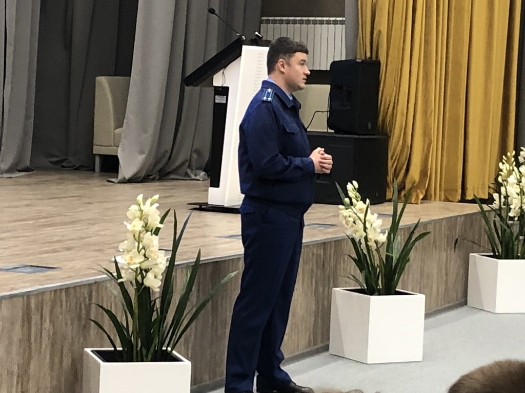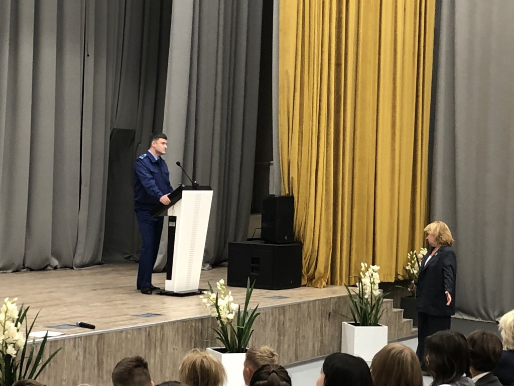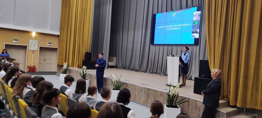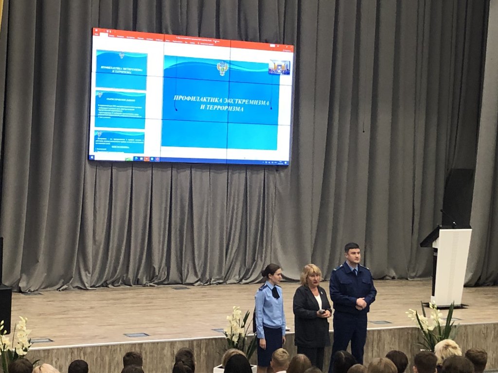 В рамках Дня солидарности в борьбе с терроризмом 2 сентября для учащихся 8-10 классов прошёл информационный урок- беседа на тему «Профилактика экстремизма и терроризма»,  который провёл прокурор города Александр Александрович Рудь.