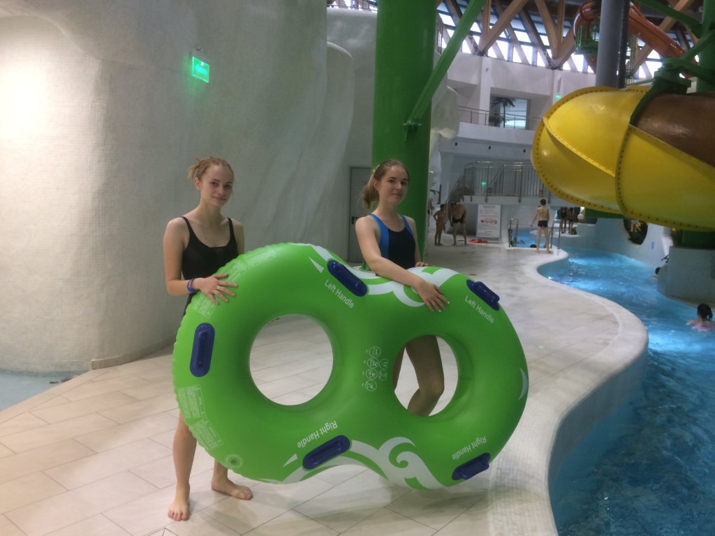 Нам же удалось раскрасить эти осенние деньки тропическими красками, журчанием водопадов и получением острых ощущений от скоростных спусков на водяных горках Новосибирского аквапарка. Особенно приятно, что рядом были друзья и одноклассники, с которыми всегда весело и интересно. Мы спускались с горок разной высоты и по одному, и по двое, и даже по трое! Это здорово! Цикличная река с течением, бассейны с разными температурными режимами, термальные зоны и морская волна, расслабляют после выброса адреналина на крутых виражах водяных горок. Впечатлений, полученных от поездки в аквапарк, хватит надолго! Будет что вспомнить с друзьями и одноклассниками.