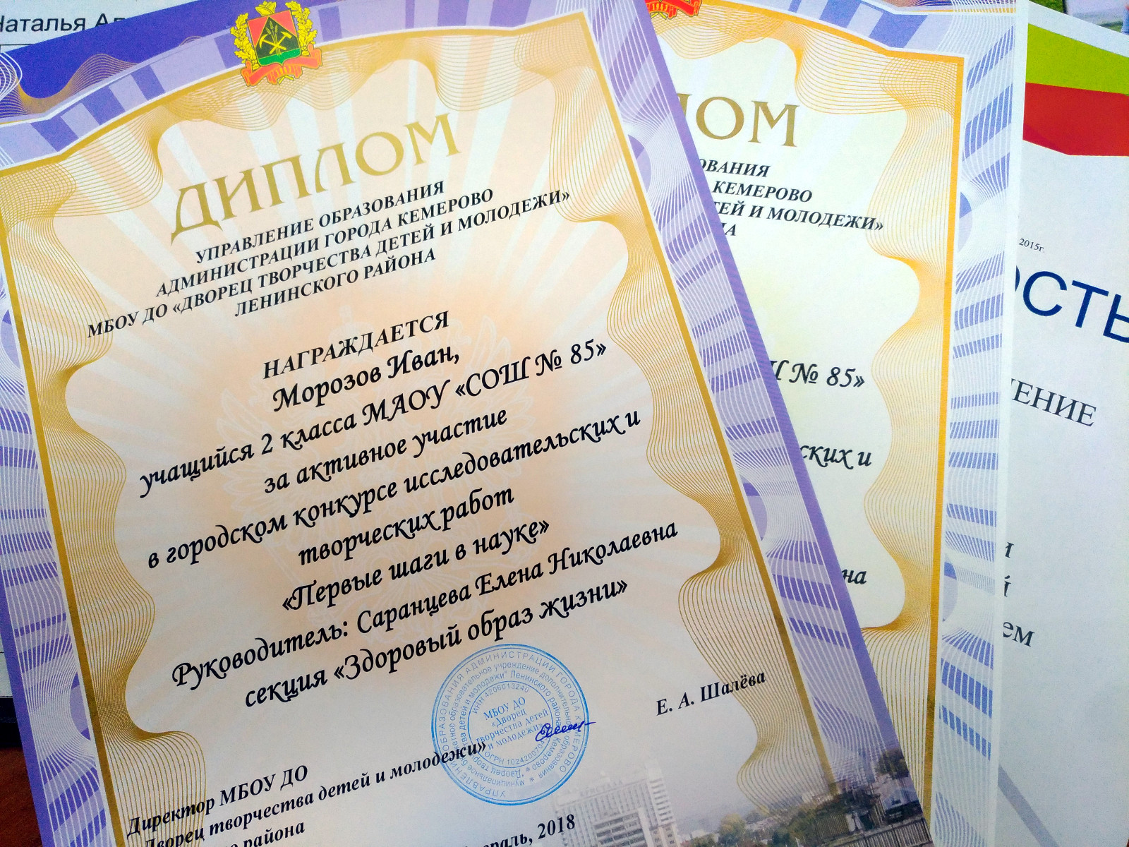 В феврале 2018 года состоялся очный этап городского конкурса исследовательских и творческих работ школьников "Первые шаги в науке". В конкурсе, который проходил в два этапа (заочный и очный), приняли участие учащиеся 1-4 классов школы №85. Все ребята, прошедшие в очный этап, получили «Сертификаты участников городского конкурса исследовательских и творческих работ школьников "Первые шаги в науке".