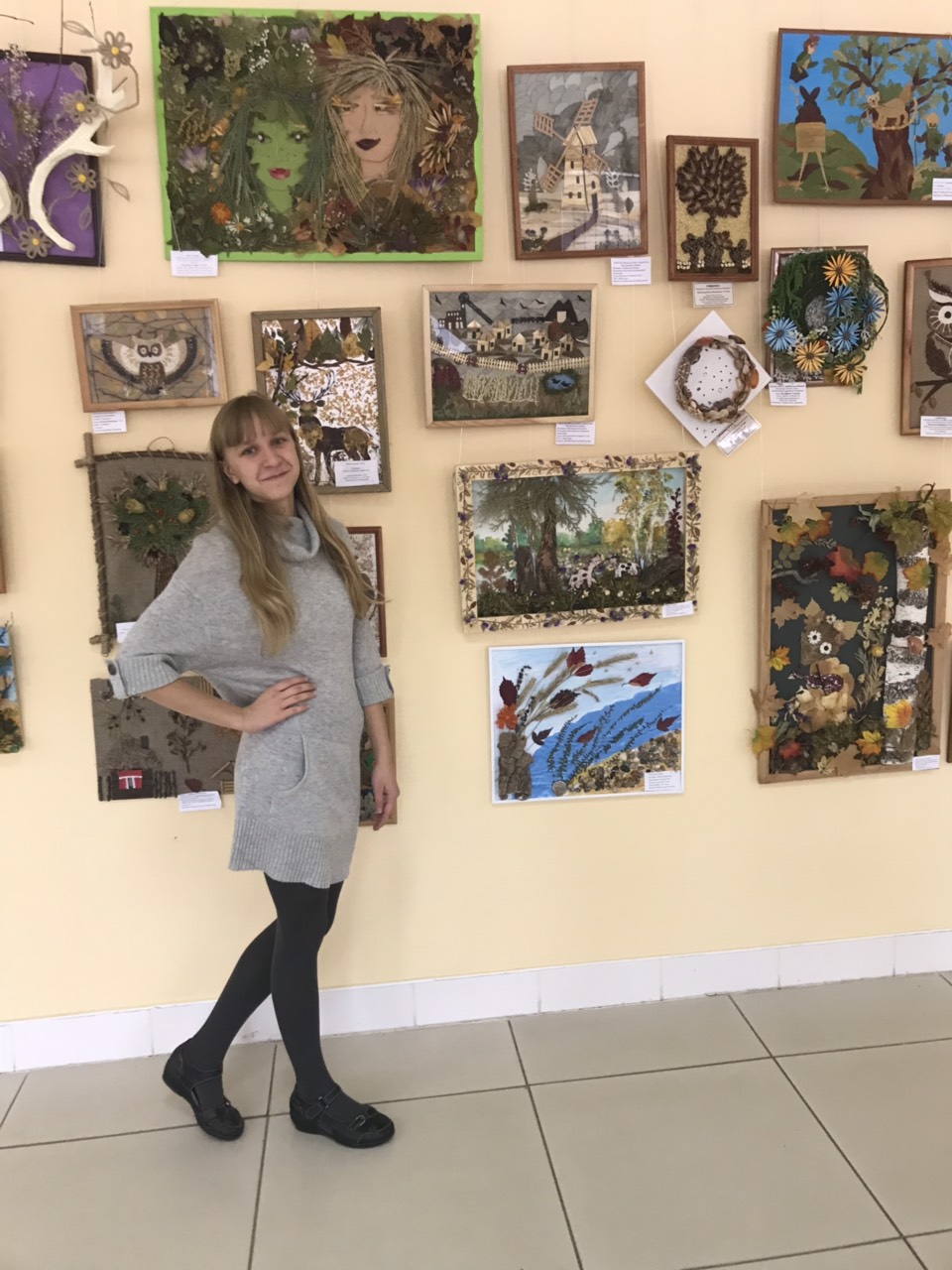 «Мария Лисичкина работала над изделием целый месяц, — рассказывает Ирина Андреевна, учитель изобразительного искусства школы №85. — Она с огромным энтузиазмом взялась за эту работу. Ей очень нравится флористика, поэтому все материалы, которые она использовала, заготавливала сама еще летом.