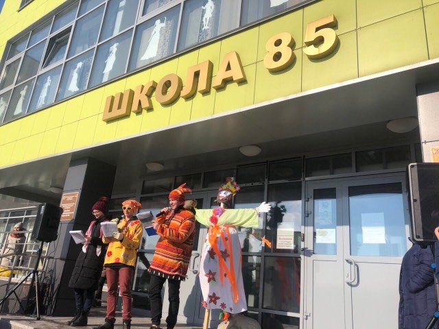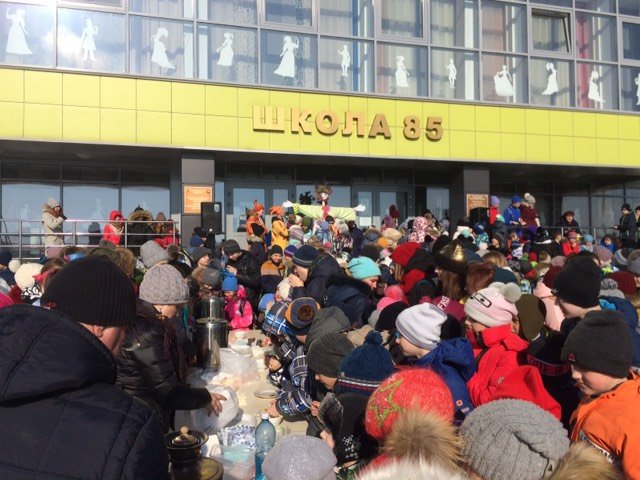 Проводы русской зимы - масленицу отпраздновала 7 марта школа №85. На празднике гулял народ с 4 по 11 класс со своими учителями. Русские забавы не дали заскучать и замёрзнуть. Согревали толпу веселыми конкурсами, блинами и сушками. 11А класс под руководством Светланы Валерьевны Ступаренко принял активное участие в проведении праздника. Девочки напекли блины, Никита Симаков, Кирилл Шаповалов, Полина Гуцал и Алина Иванова с удовольствием выступили в роли скоморохов и ведущих. Каждый класс принял участие и выступил с частушкой, танцем или веселой песней.