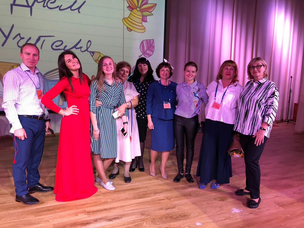 Утро праздничного дня началось необычной встречей учителей, ребята желали педагогам «Доброго утра», задавали креативные загадки и все танцевали под зажигательную музыку. Школа украшена яркими стенгазетами, шарами, а в большом холле оформлена тематическая фотозона «Мы тоже учились в школе» с фотографиями учителей за школьной партой. Праздник чувствовался во всем.