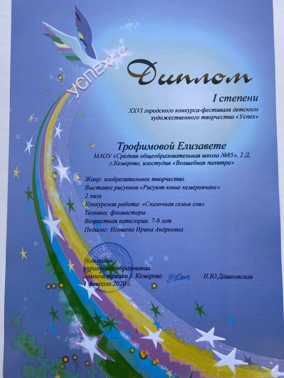 Трофимова Елизавета, 2Д класс - Диплом I степени