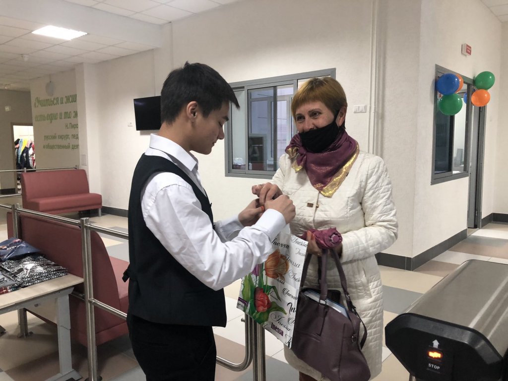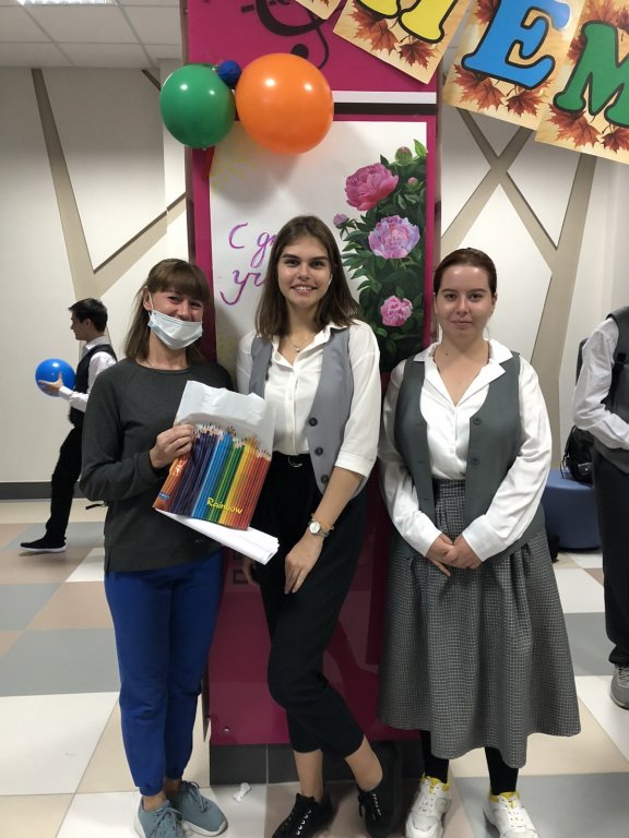 Утром учащиеся 10-х классов тепло встретили всех учителей в двух зданиях МАОУ «СОШ№85» и вручили сладкие подарки.