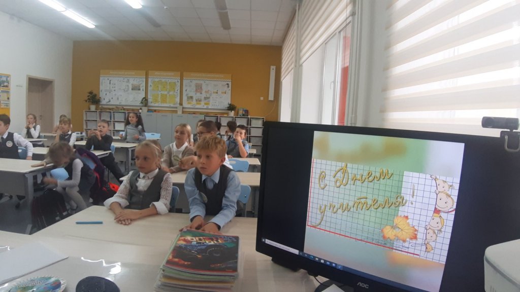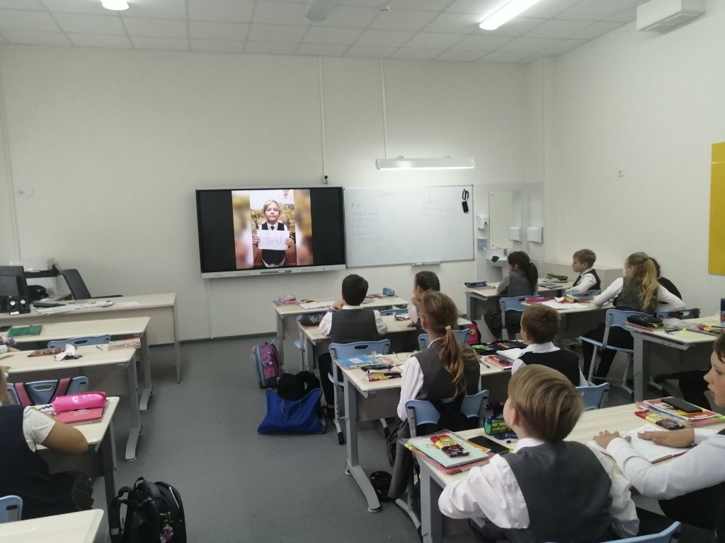 На классном часе, в этот день, учащиеся посмотрели видео фильм с поздравлениями, которые подготовил каждый класс.
